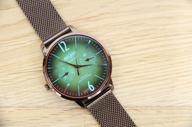 フォトジェニックなファッションウォッチ、WELDERの腕時計です。光の角度に応じて色を変える、”フォトクロミックガラス”を採用したMOODYコレクション。ブラウンのベルトにイエロー系の文字盤でクラシックな雰囲気。