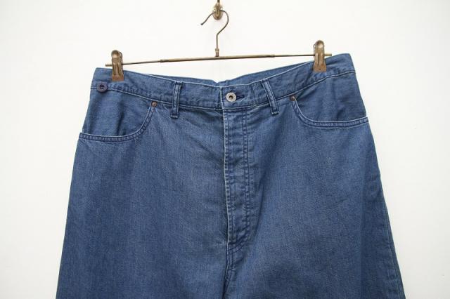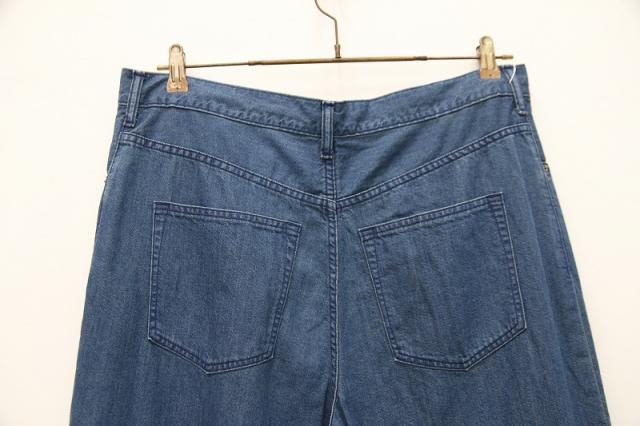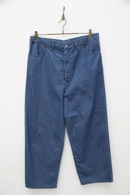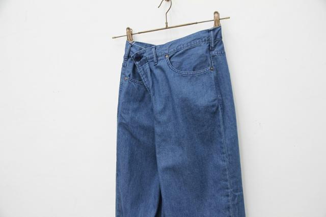 ビッグサイズのジーンズをアレンジしたパンツです。ウエストの紐を絞って穿いたり、内側とサイドのボタンを留めてタイパンツのようにして着用頂ける2WAY仕様になっております。夏でも快適に着用して頂けるよう、ライトオンスのデニムを使用しています。パンツのデザインが特徴的なので、Tシャツなどシンプルなトップス合わせでも個性ある印象でスタイリングできます。