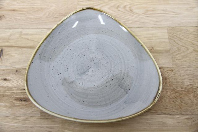 非対称形のゆるやかな三角形のロータスプレート。料理を盛り付けるとバランスよく見えます。