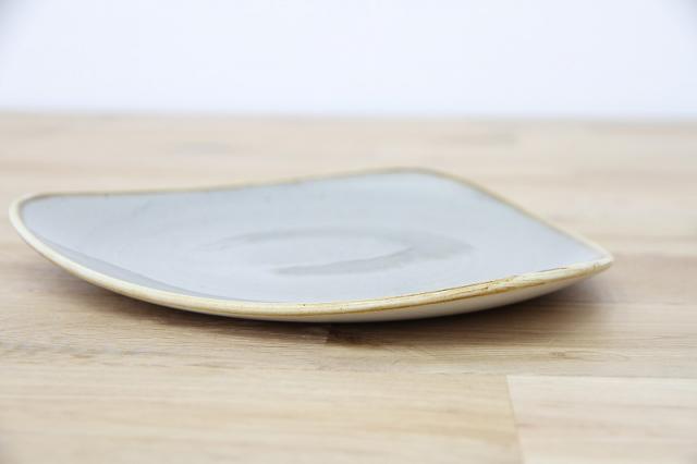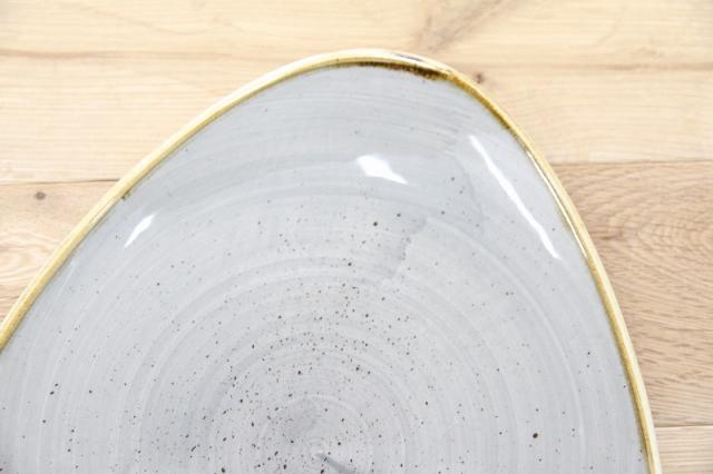 非対称形のゆるやかな三角形のロータスプレート。料理を盛り付けるとバランスよく見えます。