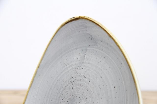 非対称形のゆるやかな三角形のロータスプレート。料理を盛り付けるとバランスよく見えます。