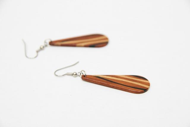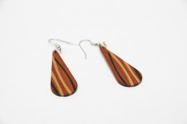 1979年創業アメリカのクラフトメーカー“davin&kesler”のピアス。木が本来持つ色や木目を生かした組木デザインは非常に細やかで、しなやかな曲線も大変美しいです。木目の落ち着いた雰囲気は、どんなテイストのファッションにも合わせやすそうです。