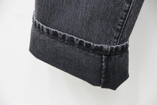 日本は岡山県のKUROKIデニムを使用。セルヴィッジ(赤耳)により、膝抜けなど形が崩れにくいハイクオリティなジーンズの仕上りに。ストレートで無骨なシルエットとなっております。ダークグレーの色味が通常のインディゴとは違う雰囲気を醸し出します。