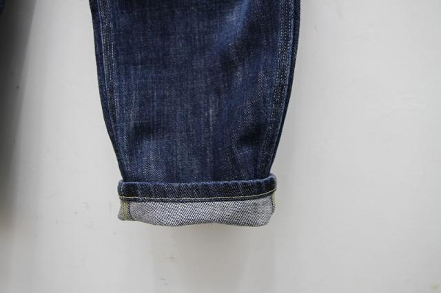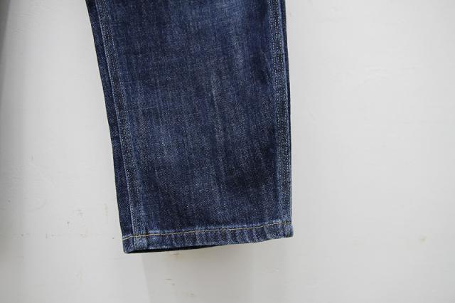 ワークテイストの8分丈ジーンズです。 ポケットの配置バランスやライトな生地感により軽さを感じるジーンズです。 腰回りに少し丸みを持たせ、ひざから裾にかけて絞り込んだ程よいサルエルシルエット。 腰穿きしてロールアップして軽く着こなして頂きたいアイテムです。