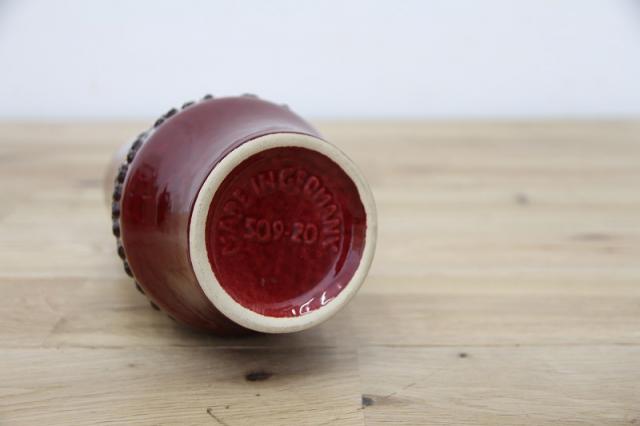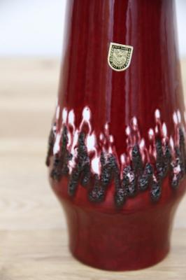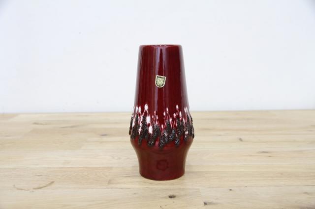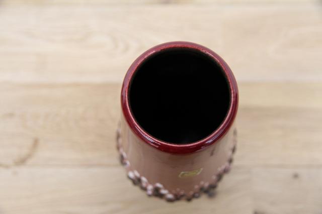 ドイツ製ヴィンテージのFatLavaテイストなフラワーベース。赤ワインのような赤の色がとっても印象的。ジグザグと黒と白の泡の釉薬が特徴あるデザインです。