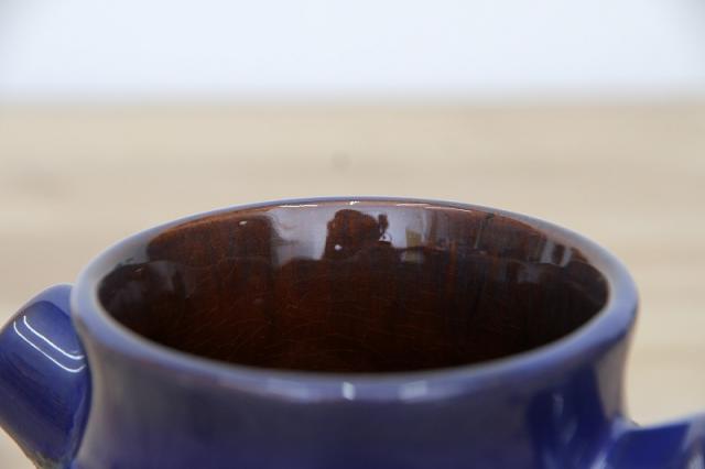ドイツMarei社の陶器製フラワーポットです。濃藍のベースに、軽石のような質感の青と白のポコポコとした仕上がりは、とても目を惹くデザインです。短い腕がついたようなユニークなデザインは気になりますね♪