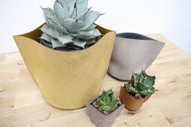 グリーンや多肉に雰囲気をグッと格上げし、お部屋のインテリアとして活躍するレザーポットです。