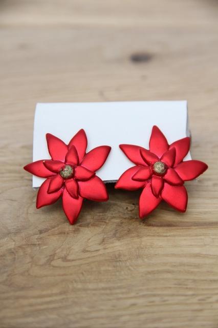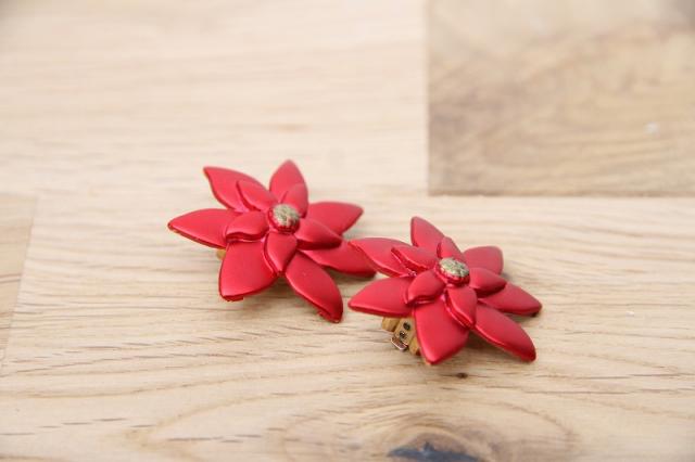 アメリカ製、レトロで元気な赤のお花のデザインのヴィンテージイヤリングです。パッと顔回りを華やかにしてくれます♪