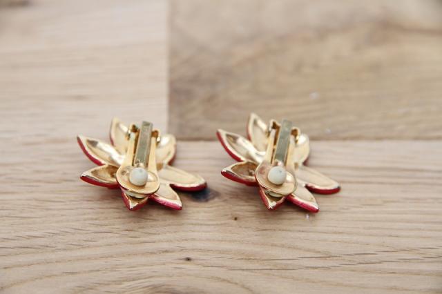 アメリカ製、レトロで元気な赤のお花のデザインのヴィンテージイヤリングです。パッと顔回りを華やかにしてくれます♪