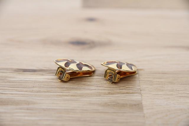 アメリカ製、モダンな茶色の模様が入ったティアドロップ型のヴィンテージイヤリングです。ミリタリーなファッションがお好きな方にもおすすめ♪