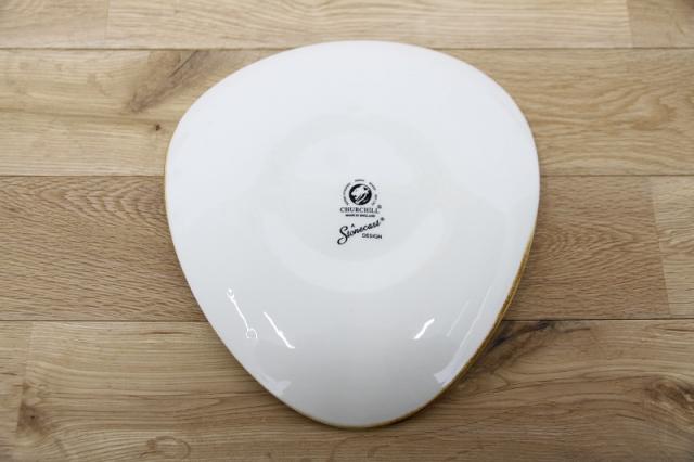 非対称形のゆるやかな三角形のロータスプレート。料理を盛り付けるとバランスよく見えます。
