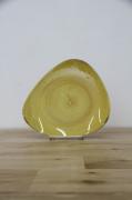 非対称形のゆるやかな三角形のロータスプレート。料理を盛り付けるとバランスよく見えます。