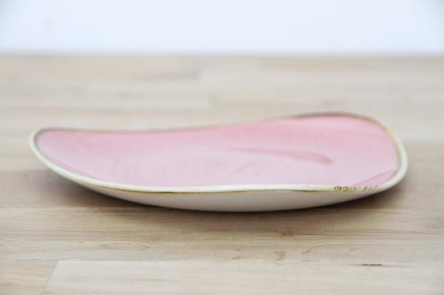 非対称形のゆるやかな三角形のロータスプレート。料理を盛り付けるとバランスよく見えます。