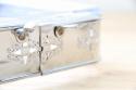 サファイアブルーの美しい色合いと浮き出たフィルビー柄のエンボスが高級感を演出してくれます。「フィルビー」のシリーズ名は、かつてアンカーホッキング社の工場員だったフィルビー(Mr.Phill Bee)さんの名前が由来だそうです。