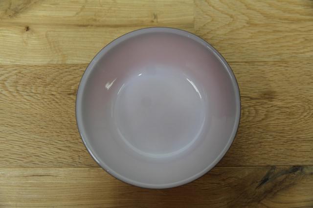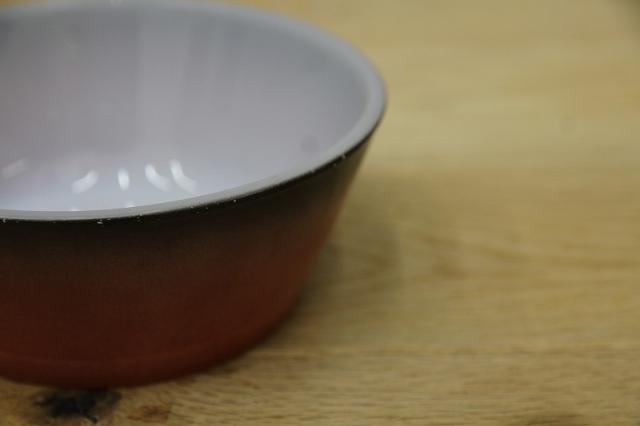 底の部分がフラットなタイプのファイヤーキングのボウルです。積み重ねて収納する事もでき、本当に使い勝手がよいアイテム。サラダ、シリアル、スープなど、様々な用途に使える便利な形。