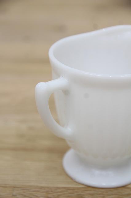 繊細なミルクガラスが特徴の、マクベス・エバンスのクリーマーです。花びらをイメージした、ペタルウェアシリーズ。