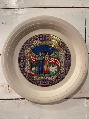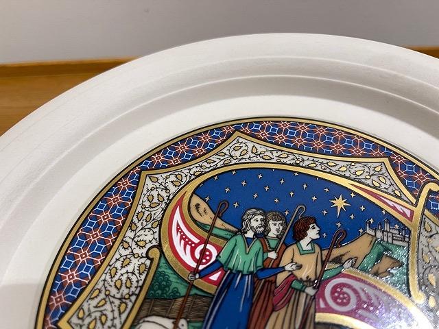 全9枚のシリーズで「CHRISTMAS」の綴りの1文字ずつがプレートにデザインされています。マットな質感の陶器に、ゴールドをの彩色で華やかにイエス・キリストの生誕のワンシーンが描かれた華やかなウォールプレートです。