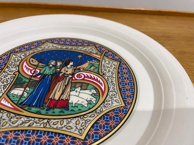 全9枚のシリーズで「CHRISTMAS」の綴りの1文字ずつがプレートにデザインされています。マットな質感の陶器に、ゴールドをの彩色で華やかにイエス・キリストの生誕のワンシーンが描かれた華やかなウォールプレートです。