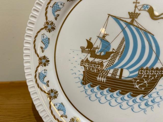1972年は「I SAW THREE SHIPS COME SAILING IN」。帆を風で膨らませ、海を進む船が描かれています。リムの部分には、魚やヒイラギ、いかりが描かれています。