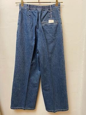 11オンスのデニムを使用したイージースラックス。岡山県で作られた薄手で軽いデニム生地を使用しています。糸のムラ感が控えめな弱ムラ糸を使用することで、デニムながらきれい目な雰囲気に仕上がっております。色落ちして淡色になると、ナチュラルなさりげないムラ感のある表情に。着込む程に、経年変化による表情の変化を楽しめる一着です。
