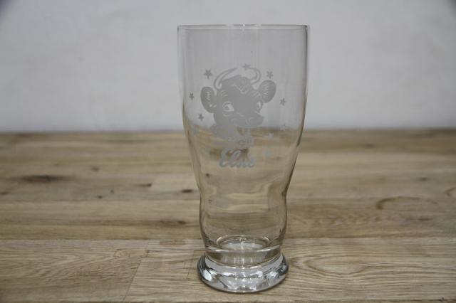 1950年代に作られたヴィンテージのビアグラス。形もくびれがありスタイリッシュなデザインを楽しめます。牛の可愛らしいデザインで癒されるそんなアイテムです。