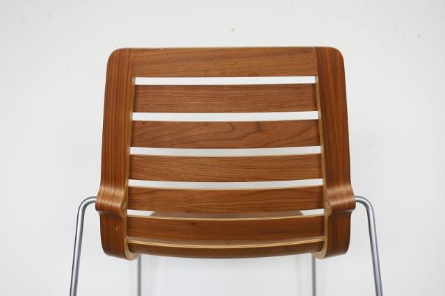 北欧デンマーク買付便のプライウッドチェア。薄くスライスされた木の層の美しさと、緩やかな曲線が目にとまります。脚はスチール製で全体的に軽やかな印象のチェアです。