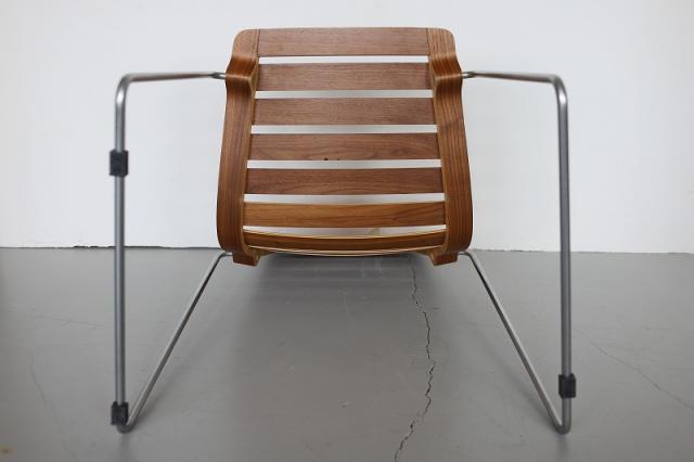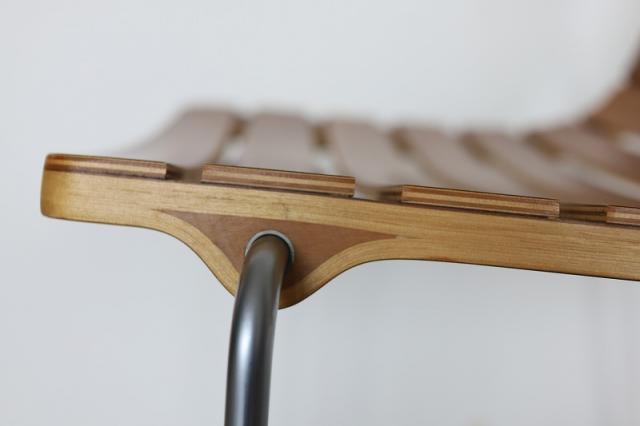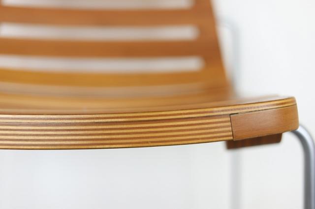 北欧デンマーク買付便のプライウッドチェア。薄くスライスされた木の層の美しさと、緩やかな曲線が目にとまります。脚はスチール製で全体的に軽やかな印象のチェアです。