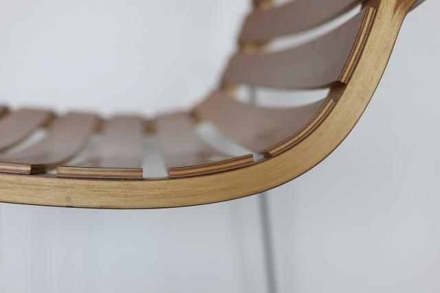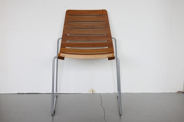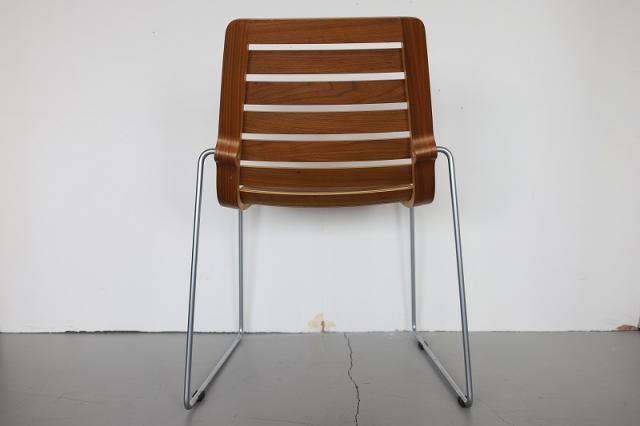 北欧デンマーク買付便のプライウッドチェア。薄くスライスされた木の層の美しさと、緩やかな曲線が目にとまります。脚はスチール製で全体的に軽やかな印象のチェアです。