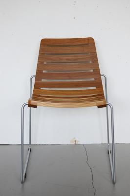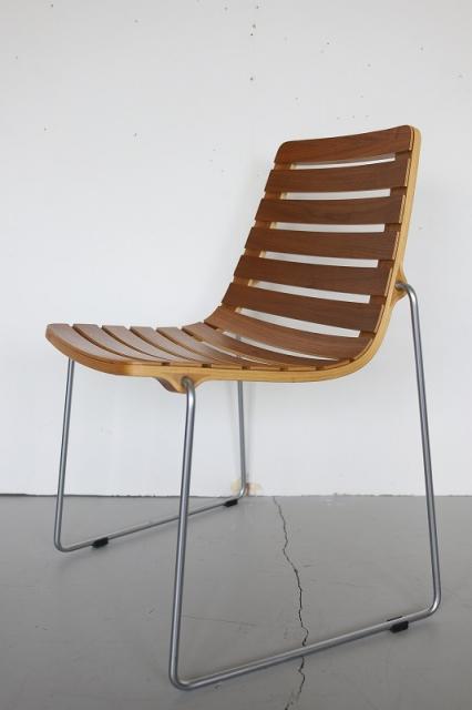 北欧デンマーク買付便のプライウッドチェア。薄くスライスされた木の層の美しさと、緩やかな曲線が目にとまります。脚はスチール製で全体的に軽やかな印象のチェアです。