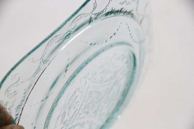 細かい刻印が施されており、高級感があるプレートになっております。淡い青のグラスを是非お試し下さい。