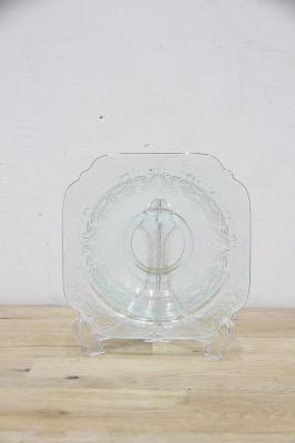 細かい刻印が施されており、高級感があるプレートになっております。淡い青のグラスを是非お試し下さい。