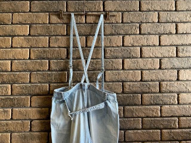 7.25オンスのライトデニムを使用したサスペンダーパンツ。ナチュラルなムラ糸で織られた生地は、加工した時に古着を再現したような加工感に仕上げています。シャンブレーよりもソフトで膨らみがあり、経糸の番手が太いのである程度の耐久性もあります。