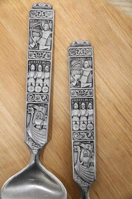 取っ手部分にはヴァイキングのレリーフが裏表に施されています。