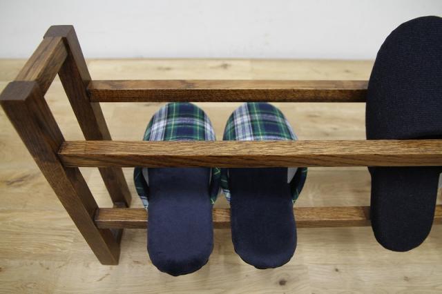 北欧家具にもよく使われる耐久性があり高級木材の一つとされるオークの無垢材を使用したスリッパラックです。