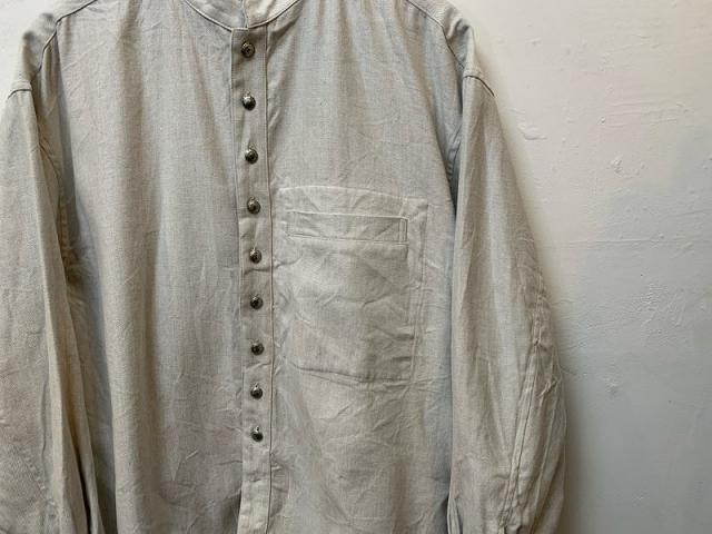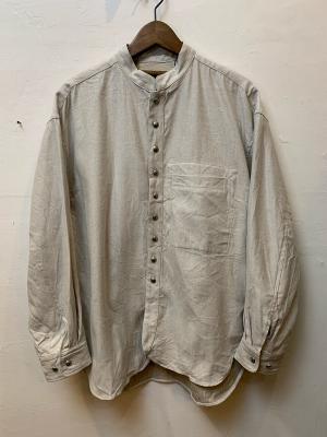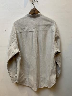 洗い加工によって生まれた自然なシワ感が、ヴィンテージのような奥行きを感じさせます。襟はスタンドカラーで首元をすっきりと見せ、洗練された印象を与えてくれます。