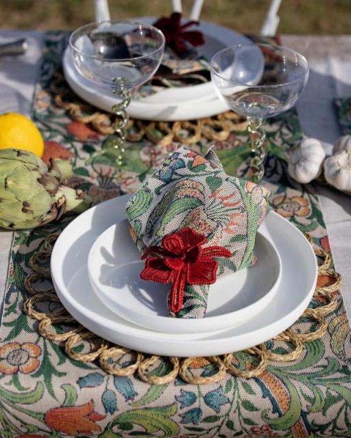 他にキッチンタオルはもちろん、デザインや色彩が素敵なのでテーブルに敷いてインテリアとしてもお使いいただけます。