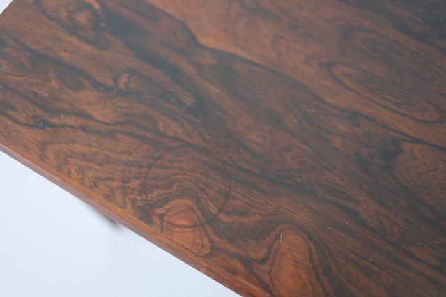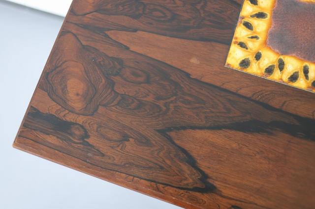 北欧デンマーク製のネストテーブルです。ネストとは「入れ子」の意味があることばで、大きなサイズのテーブルに小さなサイズのテーブルがきれいに収まるつくりの家具です。ワンポイントのタイルがデザインのポイント。力強いローズウッドの木目も雰囲気が出ます。