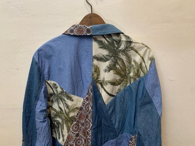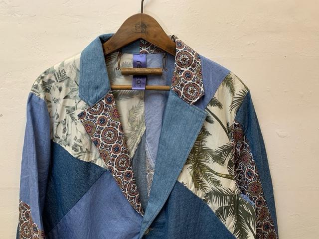 柄素材をミックスしたパッチワークラペルドジャケット。