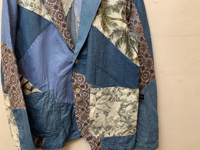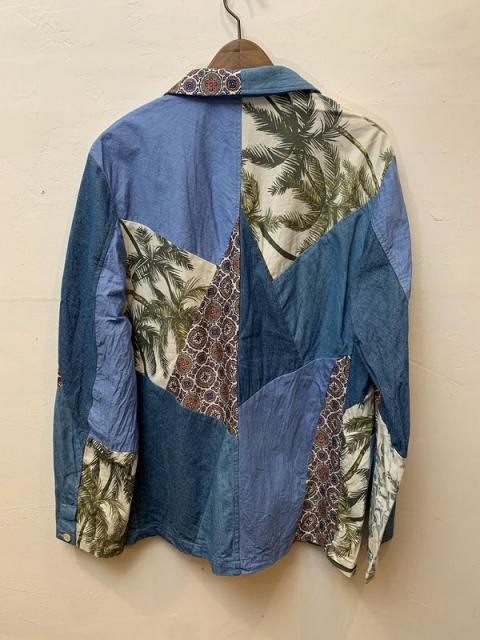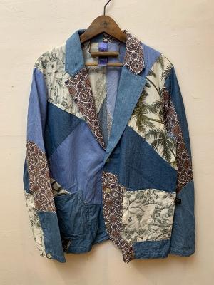 柄素材をミックスしたパッチワークラペルドジャケット。