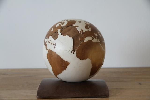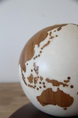 ウッドの台座に、天然木と樹脂を使用した地球儀をセットできます。