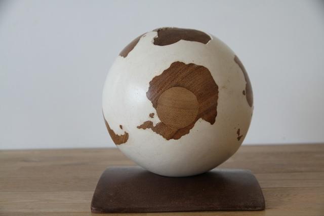 ウッドの台座に、天然木と樹脂を使用した地球儀をセットできます。