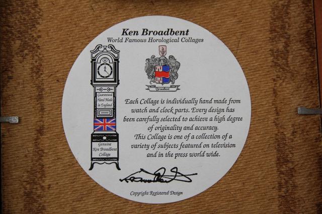 1970年代にイギリスで、Ken Broadbentによりヴィンテージの自動巻き腕時計のムーブメントパーツを使ってコラージュされた掛時計です。